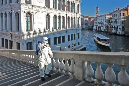 (Pic: Covid-19 Disinfection taking place in Venice (IPA/Backgrid))